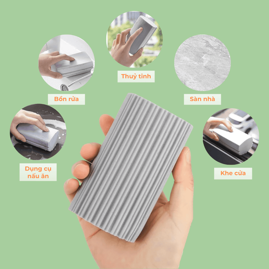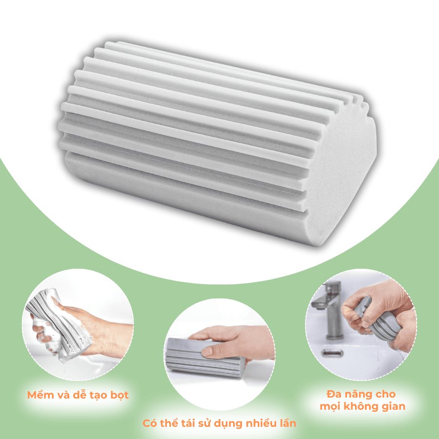 - Kích hoạt bằng nước: Chỉ cần làm ẩm trước khi sử dụng, miếng xốp sẽ mềm mại và hấp thụ bụi bẩn tốt hơn.